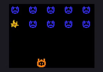 Spilleren spiller mod fjender, som er rumskibe der kommer oppefra. Der er flere rækker fjender, som spilleren skal skyde ned.